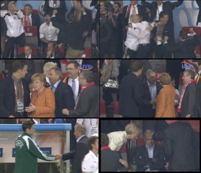 ・・・メルケルさんはまだ獲物を探していて、一瞬監督にも気がつかなかったり。