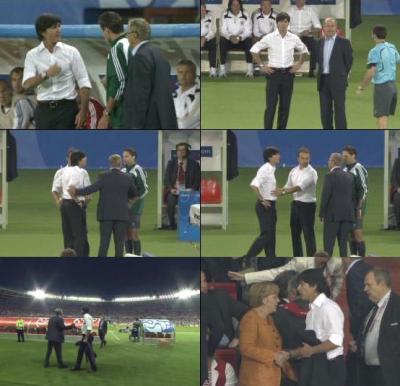 観戦に訪れたメルケル首相も、レーヴ監督に一言二言告げています。