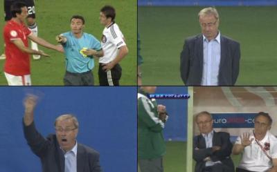主審が駆けつけ、よく分からないうちに、なんと、両監督共に退席処分に。