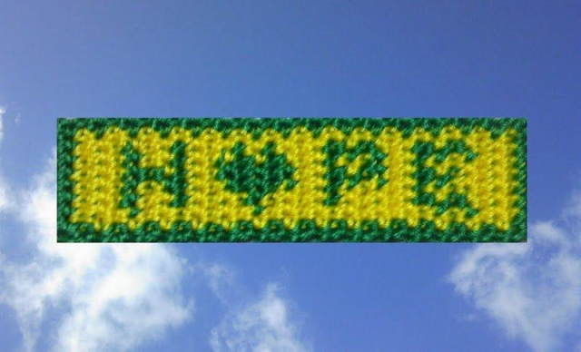 希望を意味する英語の「HOPE」の「O」をハートに変えたデザインでした。