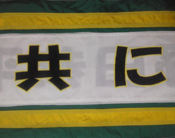 今日は、まだ乾燥途中ですけど、布書き用ペンを使って、ゲーフラの手直しをしていました。
