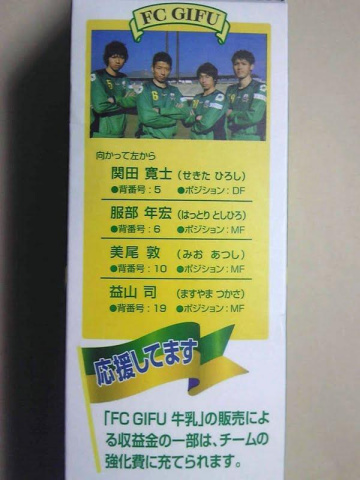 ひるがの牛乳さんの、美濃酪連さんは、牛乳でもFC岐阜を応援されています。