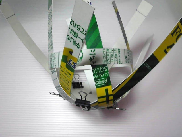スタジアムで教えてもらった作り方とは違いましたが、とにかく、互い違いに組み合わせる事で、大小のボールを作る事ができました[d230]