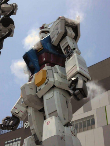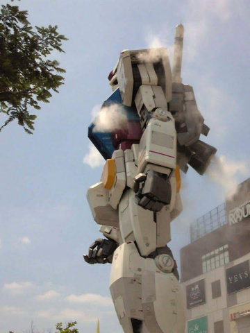12時には、外のガンダムの首の向きが動いたり、スモークが出たりしていました[d221]