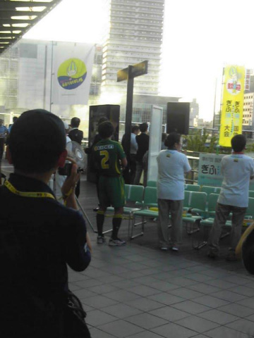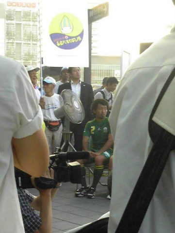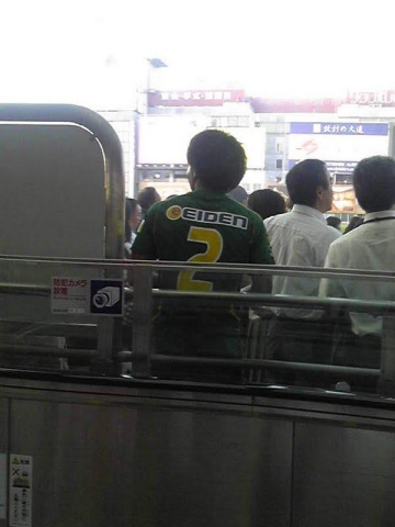 図書館で予約していた本を借りてから、駅前のエスカレーターで上がったところで、ユニフォーム姿の選手発見[d230]