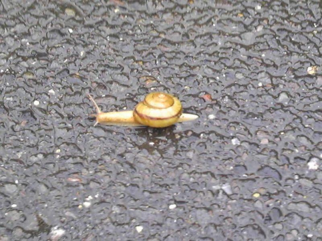 あいにくの雨で、カタツムリが道を横切っていました[d223]