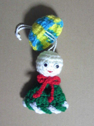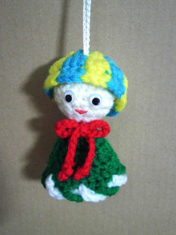 以前編んだ、帽子をかぶったテルテル坊主のマスコット…
