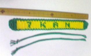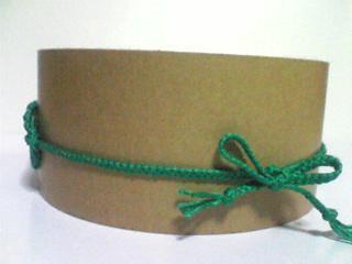 長さ18.5センチで、長めの三つ編みのヒモを両脇に付けます。
