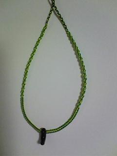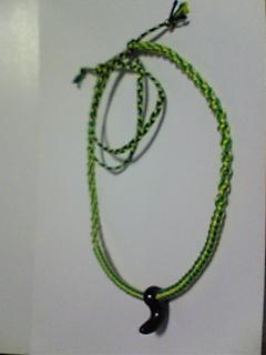 先日、アクティブGの応援横断幕にメッセージを書いてきた時、3階にあった「ストーンガーデン」という「きれいな石屋」さんで、小さな勾玉をひとつ買ってきていました。