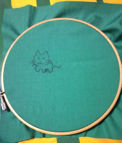 刺しゅう用のワクをはめて…