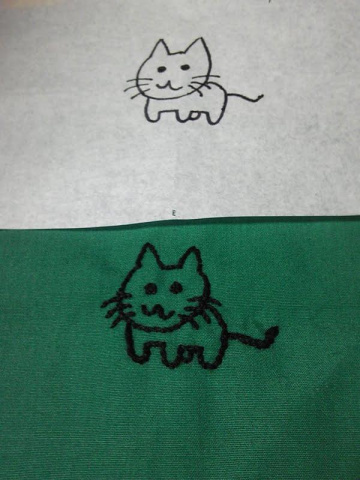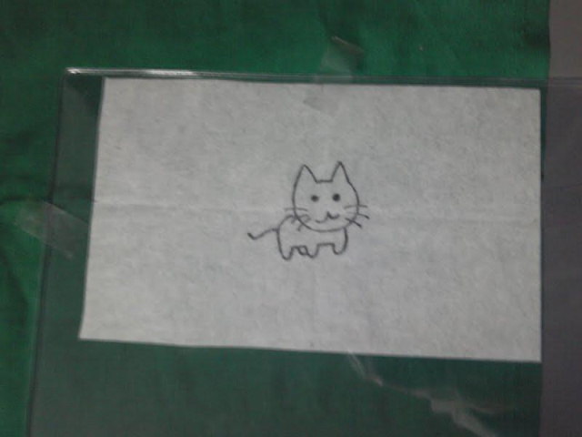 布の裏の、この絵を使いたい場所に、裏向きに、テープで貼り付けます。