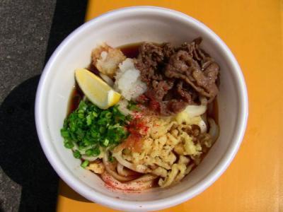 徳島ゴール裏の売店で売っている肉ブッカケうどんです 手打ちメンですが少しこしがないか。 ぼっちゃんはこしありが好みです。