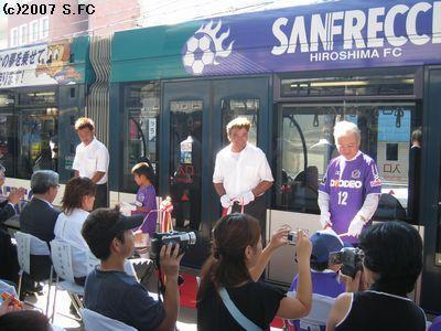 出発式には、ペトロヴィッチ監督、佐藤寿人選手、駒野友一選手が出席したそうです。