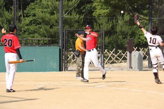 ノーアウト3塁の大ピンチ、、、。 点を取られてたまるものかと、、しかし相手も慣れてきたかあれよあれよと3点、、その後も1点、3点とついに9−1、、9回ウラ意地を見せたいところ先頭のCAPが3塁強襲安打、、だが後が続かずはや2アウト2塁、バッターは不調のHIRO。 意地の一打を見せました!! センター前のポテンヒット!! CAP長躯ホームイン!! なんとか意地を見せた!!
