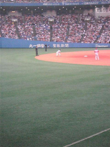 球場の外の階段を下りている途中、目の前を通りすぎていってしまいました。