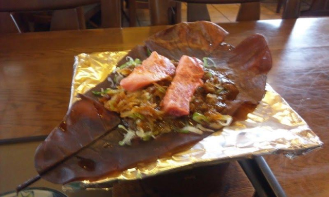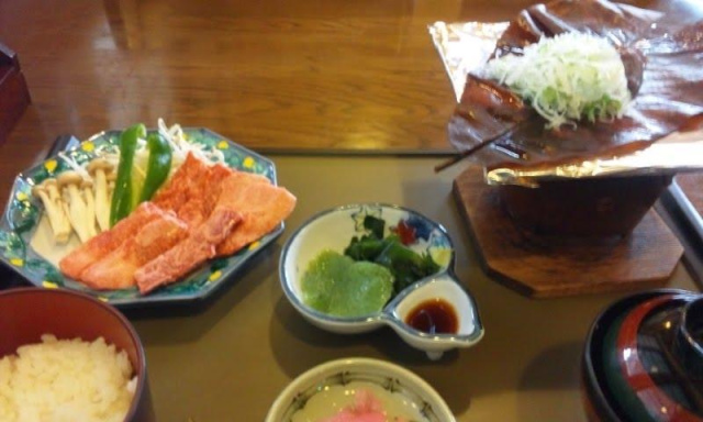飛騨牛の朴葉味噌焼きとさしみこんにゃく
