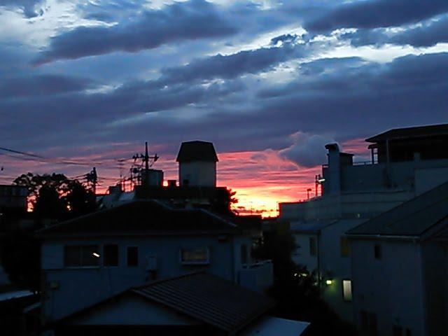 空が真っ赤に染まって綺麗だったんだけど携帯で撮った写真だと残念だけど 伝わらないね・・・