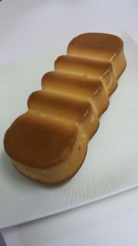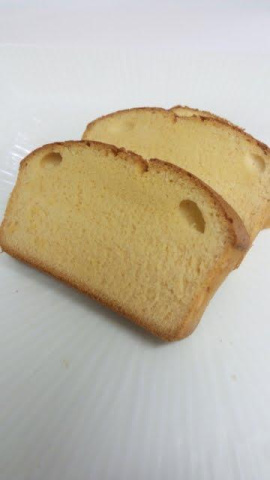 パウンドケーキ用の型で焼いたので変な形になってしまいましたが…。