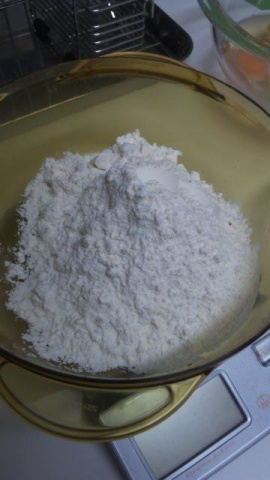 さて今回も小麦粉と砂糖を混ぜて焼きますよ。