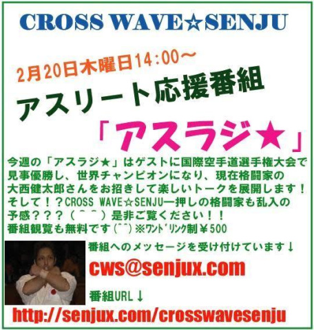 明日、2月20日(木)はアスリート応援番組「アスラジ★」の日です!!