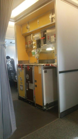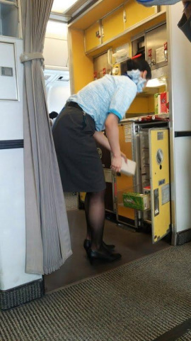 今日の席は21K非常口の窓側。客室業務員と向かい合わせです。