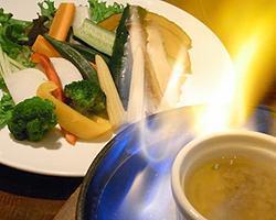 オリーブオイルにアンチョビ、ニンニクを混ぜたソースを温め、そこに野菜を浸して食べます。