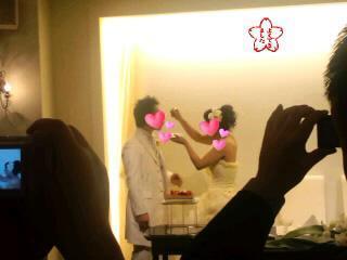 お二人のケーキ入刀、ファーストバイトで写メ撮りまくりのラボの面々 笑っ!みんないいデジカメもってるなあ〜〜感心 笑っ!