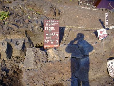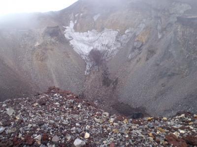 様子をみて、逃げるように下山。ところが突風で吹き飛ばされそうになり、しゃがんだところに後ろから人が転がってきたり。砂利が容赦なく風に舞い上がり肌に突き刺さったりと…大変な思いをしながら七合目まで降りてきました。