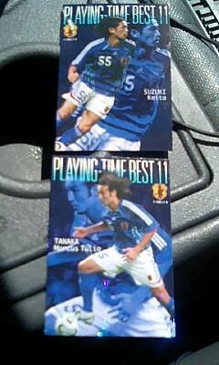 今お昼食べて、ビッグハウスというスーパーで日本代表チップスを2袋購入!なっなんと4枚のうち二枚が綺羅カード、しかも啓太君に闘莉王!(あとの二枚はU19の選手)