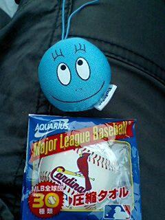 そして今日、アクエリアスを買ったらメジャーリーグの圧縮タオルが付いていました。こんな小さいのにハンドタオルくらいにはなるのかな?