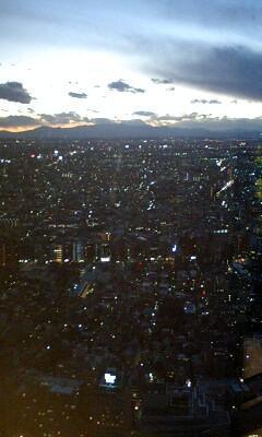 画像は都庁の展望台から見た富士山(真ん中あたり)