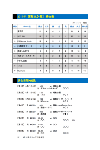 【FC函館ナチャーロ】函館サッカーリーグ4部結果(6月28日現在)