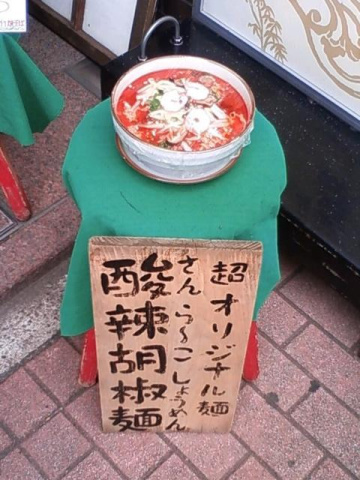 だってメニューに「超オリジナル麺酸辣胡椒麺」って買いてあって、