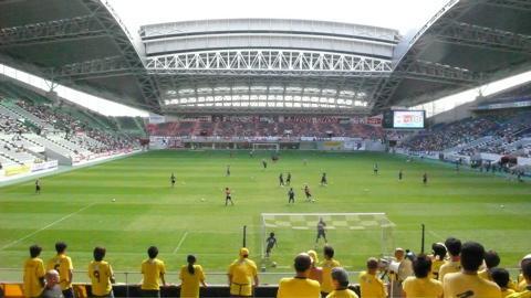 でスタジアム入り、いつ見ても良いスタジアムです。