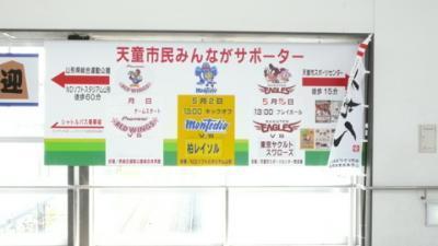 新幹線で天童駅に前日の昼過ぎ到着。駅で早速アウェイ気分です。