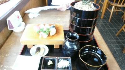 天童は、水車生そばが有名らしい。(知らなかったけど)店を探して迷った挙句、寿司ショップ彩と云う店に入った。店の外には「ラーメン」「そば・うどん」等ののぼりが並んでいました。