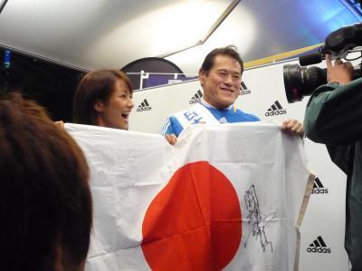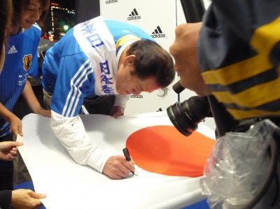 日本代表の国旗にファンからのメッセージを書いてもらうという企画を