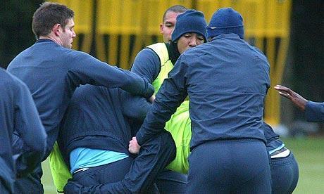 イギリスメディア「ザ・サン」の記事によると、今日開催されるプレミアシップのアーセナル対マンチェスター・シティ戦の前日、マンチェスター・シティの練習場で練習していたマンチェスター・シティのとある選手が練習中に激しいタックルをしかけたことで、チームで大喧嘩が起きたようです。