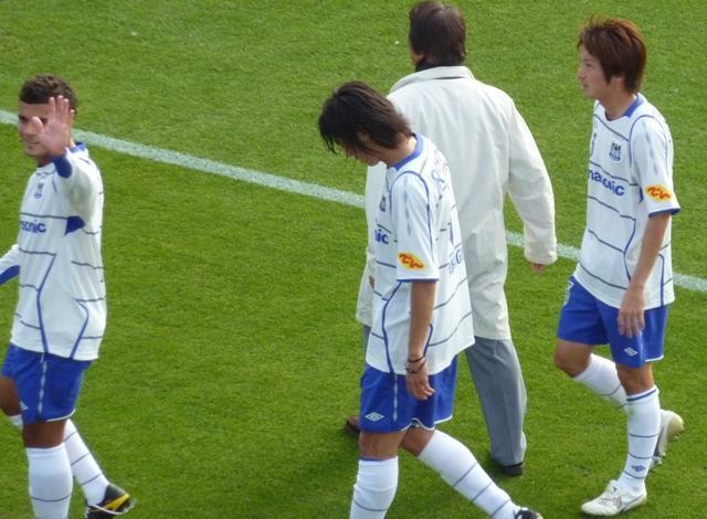 試合の後、サポに挨拶して引き上げる選手たち。