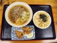 この店は食券機で買うシステムで、自分はそば+ウニ飯+唐揚げ2個付きのCセットを、長女かけそば、みんなで分ける用に唐揚げ5個を一皿、味付けは新商品の塩麹唐揚げに‼下の娘は止めたにもかかわらず、唐揚げうどんを選択(苦笑)