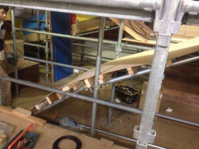 昨夜も幼稚園で作業をしまして、凸凹風滑り台の制作をサポート‼