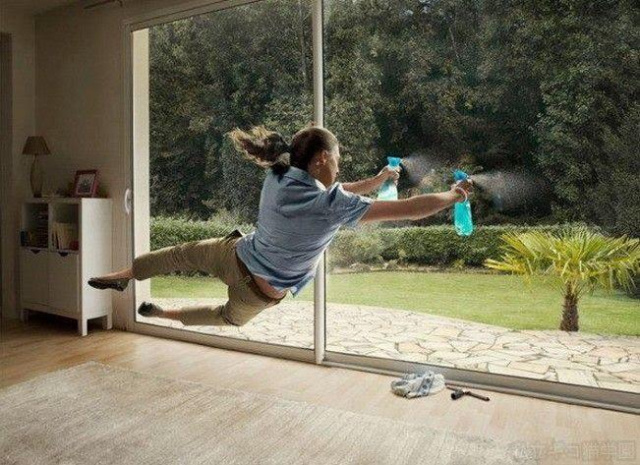 昨日の窓拭きの様子の画像をご覧下さい(笑)