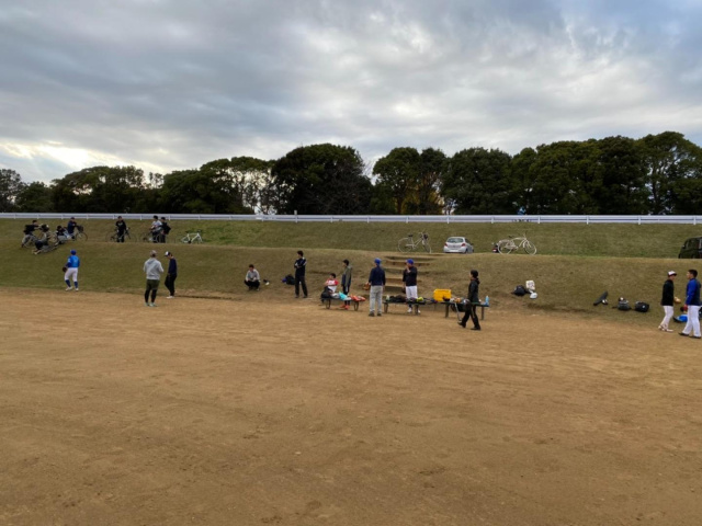 前日のダブルヘッダーの疲れもあり、四時間の練習はしんどいなぁと思いながらいつものメニューをこなしていたのですが、どうも隣のグランドで楽しそうに練習している若者達が、9名以下のようなので、思い切って「練習試合しません?」と声をかけてみたところ、快諾頂きました。