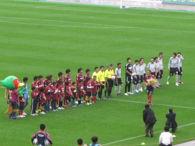 ゴールラインに弾かれたが、岡山の方が出だしが良く、パスを小刻みに繋ぎ、