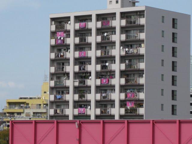 ホームゴール裏のマンションにピントを合わせてみたら