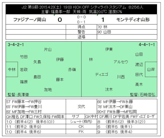 前回対戦 2014年10月19日 J2第37節 岡山1-4山形@カンスタ