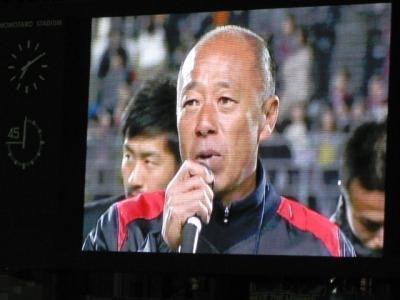 監督勇退セレモニーで挨拶をする手塚聡監督。