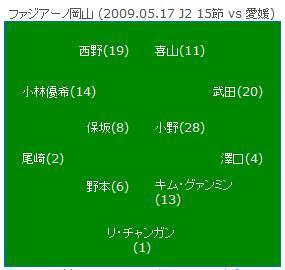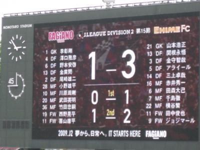 得点者:前半29分 内村圭宏(愛媛)、後半2分 内村圭宏(愛媛)、後半11分 赤井秀一(愛媛)、後半44分 喜山康平(岡山)