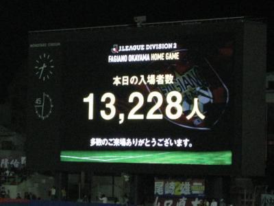 入場者数は、ファジ岡山主催ゲームでの新記録13228人。