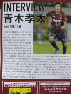 ホームゲームで配布されるマッチデープログラム(Vol.20 2ページ目)に初めて載った青木孝太。